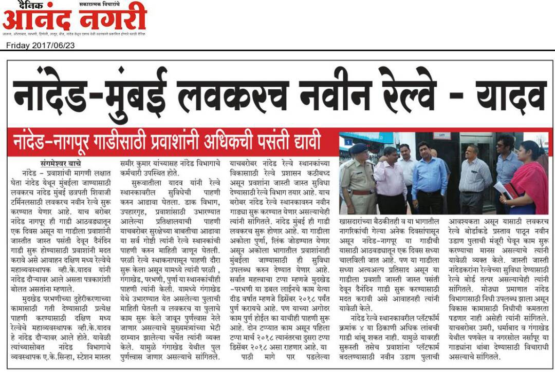 4240103 0 Good News Ned Ned Hazur Sahib Nanded 4 Pfs Railway Enquiry from st.indiarailinfo.com Get latest hello nanded epaper in marathi with one of the most popular marathi newspaper lokmat. Huzur sahib nanded railway station. Contact insaf nanded newspaper on messenger. Contact our media expert to get lowest ad rates for newspaper. Create a great news website with our newspaper template. Advertising in nanded newspaper through leading ad agency. Prajawani nanded covers news in the general interest category. Lokmat hello nanded marathi newspaper: