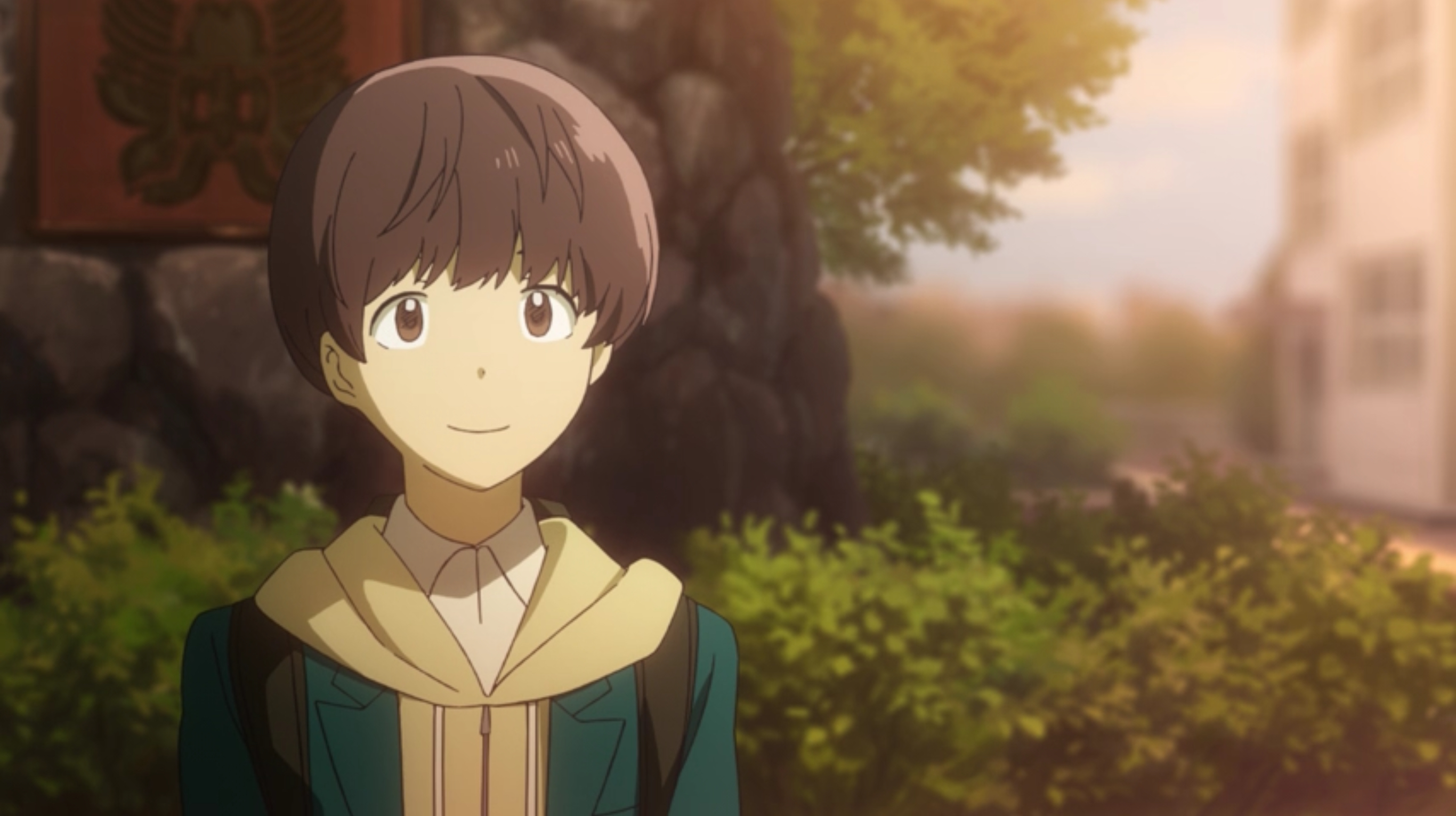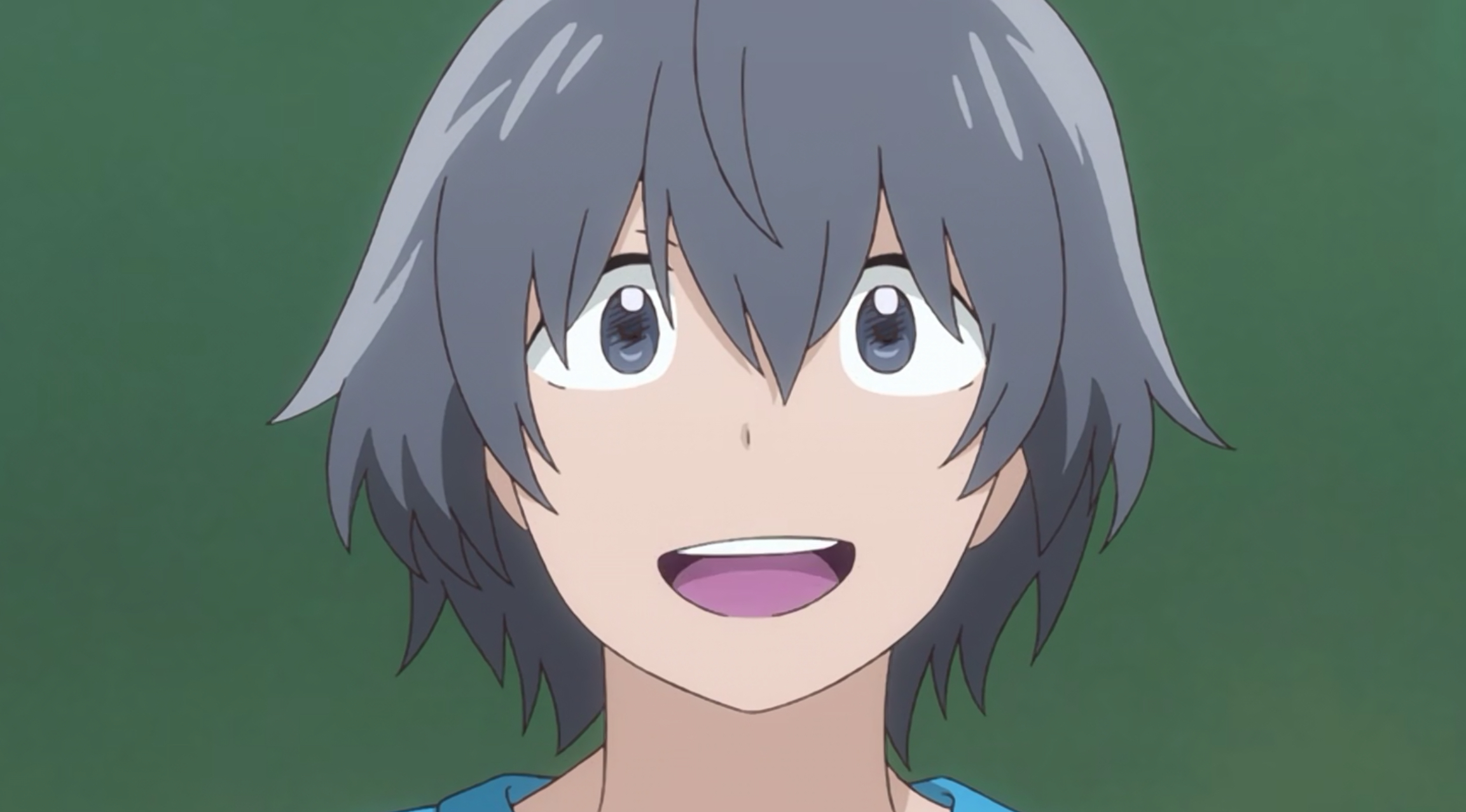 Ameno is a short boy, with brown hair that barely covers his eyes.